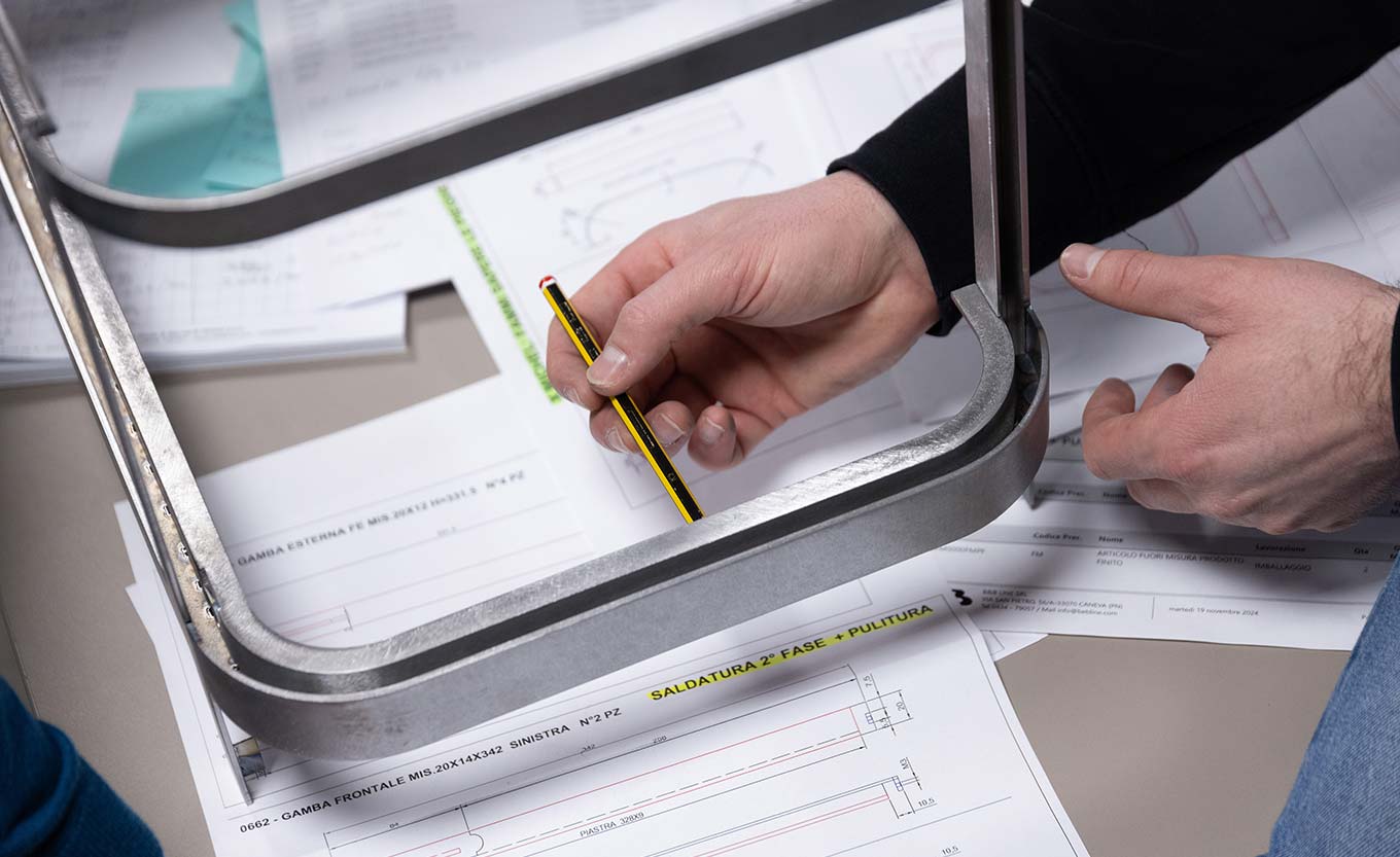 Il personale di BeB Line lavora partendo da schizzi concettuali, render e modellazioni 3D, per progettare e fabbricare nuovi prodotti. In questa fase lo scopo è quello di testare e valutare i prototipi da tutti i punti di vista.